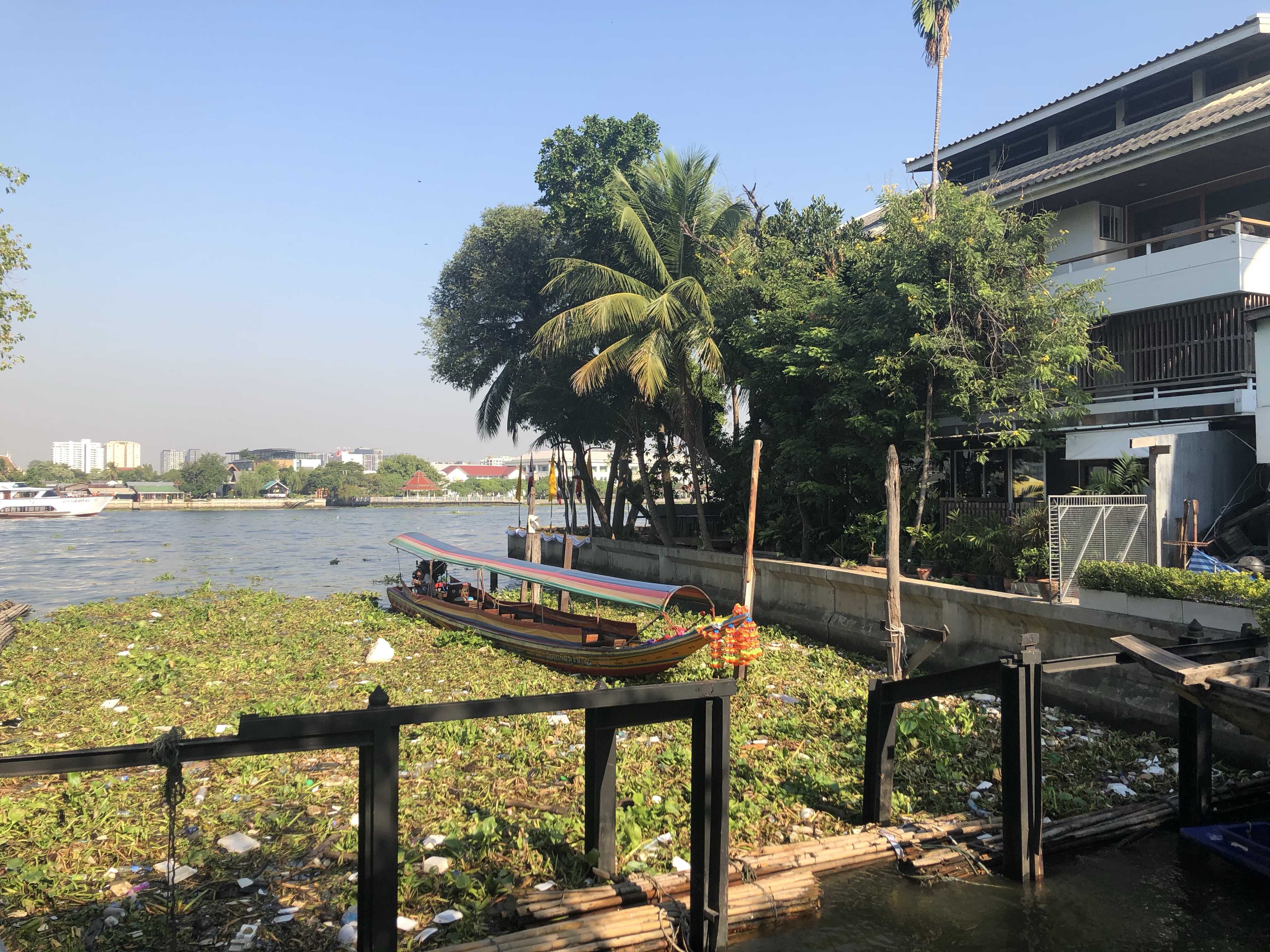 Auf einem kleinen Spaziergang schaue ich mich um. Es ist stickig. Die Smog-Messung zeigt über 200 an, die Sicht ans gegenüberliegende Ufer ist trüb. Ich gehe die Hauptstraße entlang. Sie ist dreckig, Scooter und Tuktuks rasen an mir vorbei, hupen. Die Stimmung drückt, als läge die Geschichte der Stadt schwer auf ihr. Die Leute blicken mich an, nur manche lächeln. Einige westliche Männer sitzen mit Bierflaschen in der Hand allein in den Bars. Die Blicke sind leer.