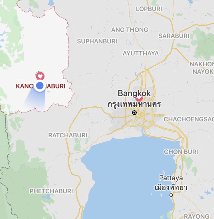 Die kleine Stadt Kanchanaburi liegt am Fluss Kwai. Historisch gewann die Stadt im zweiten Weltkrieg an Bedeutung, als Japan von Kriegsgefangenen und Einheimischen eine Zugverbindung nach Myanmar bauen ließ, die bei Kanchanaburi über den Kwai führte. Unter schrecklichsten Arbeitsbedingungen kamen schätzungsweise 100.000 Menschen um ihr Leben, weshalb die Zugverbindung auch Todeseisenbahn genannt wird. Heute verkehrt der Zug überwiegend touristisch genutzt zwischen Bangkok und der Provinz Kanchanaburi, wo mit Museen und einem Friedhof an die Opfer gedacht wird.